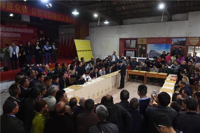 下午三点,象棋特级大师应众赛——吕钦与你相约上岳古村活动,把本次比赛推向高潮。二十名慕名报名的县内象棋爱好者一字排开,向心慕中的偶像——“小吕飞刀”吕钦讨教,好不热闹!激动并快乐着。吕大师亲民友善,棋艺超群,让大家一睹大师风采,经两个多小时激战,吕大师以十五胜三和二负结束战斗。