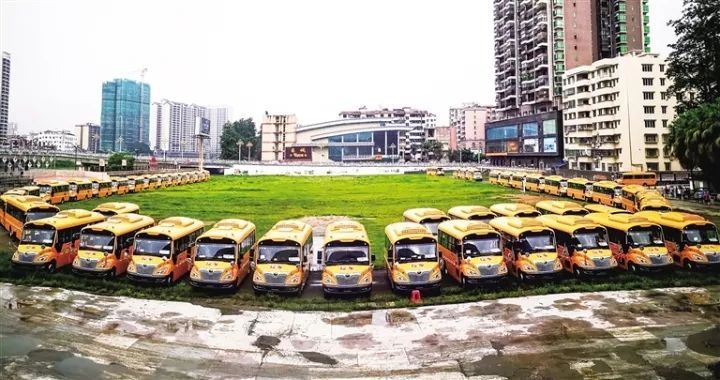 2018年9月1日,48辆黄色的“大鼻子”大巴车从阳山县人民广场有序驶出,奔赴全县13个乡镇“正式上岗”,它们是在新学期陪伴阳山乡镇孩子上下学的安全伙伴。