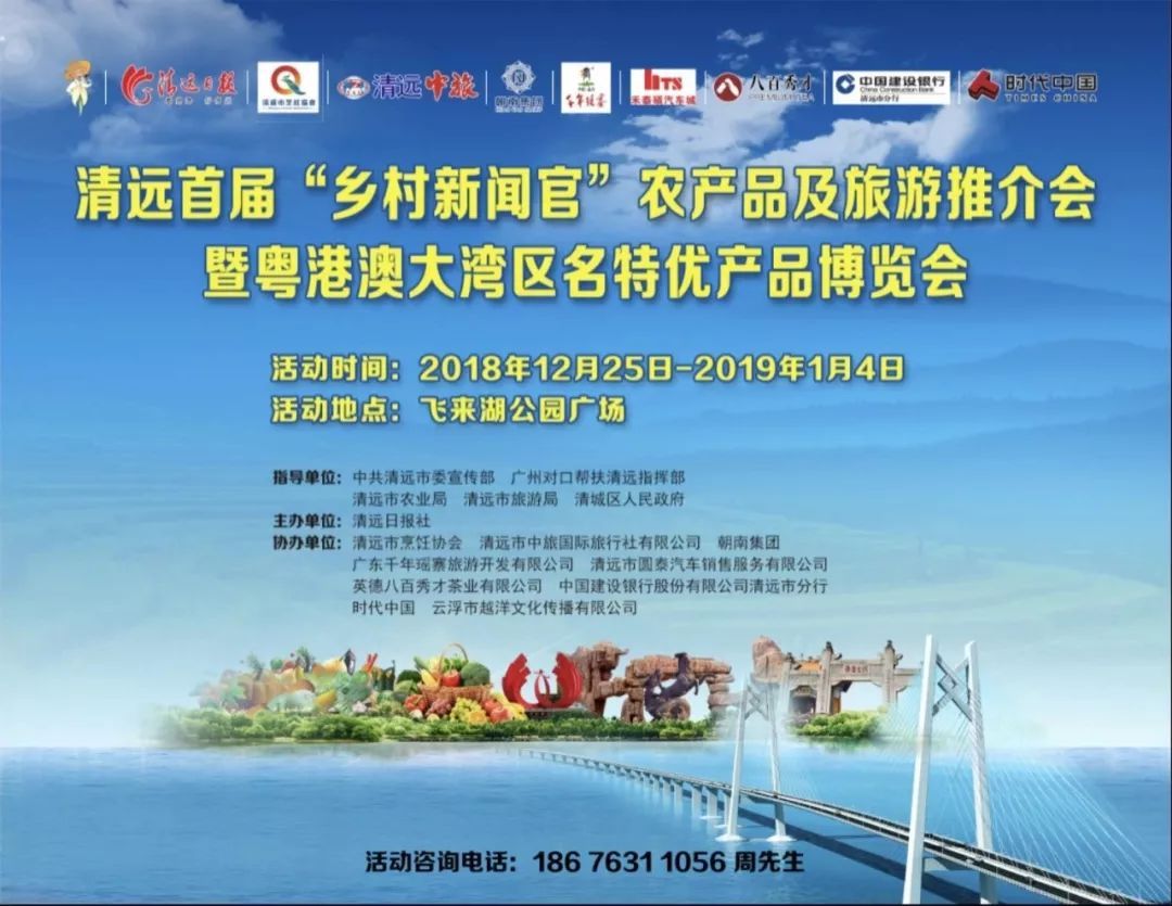 本月25日举办的清远市首届“乡村新闻官”农产品及旅游推介会暨粤港澳大湾区名特优产品博览会。