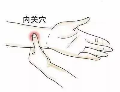 按压内关穴,有宁心安神、理气止痛的作用。内关穴属于手厥阴心包经,位于前臂掌侧、腕横纹三指的地方。