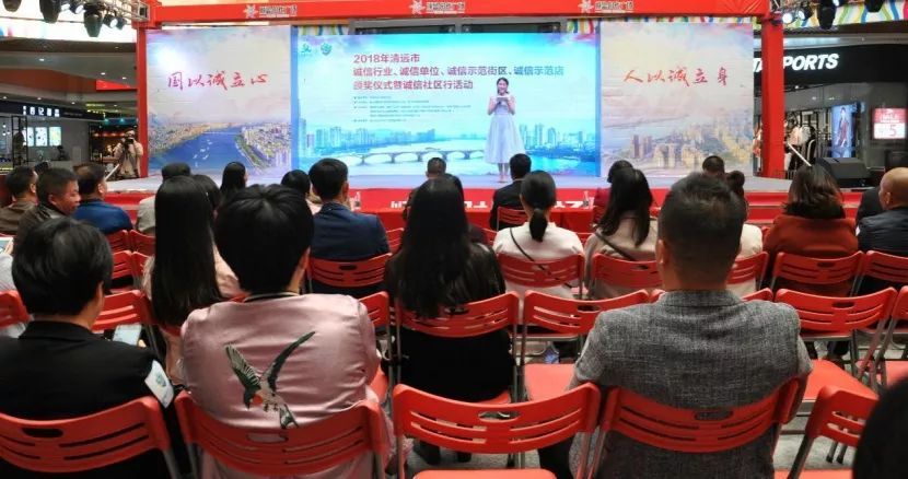 11月23日,由中共清远市委宣传部指导,清远市精神文明建设委员会办公室、清远市发展和改革局主办,清远市正向文化产业发展有限公司承办的“2018年清远市诚信行业、诚信单位、诚信示范街区、诚信示范店颁奖仪式”在市区顺盈时代广场隆重举行,活动公布了2018年度清远10个诚信行业(企业)、26个诚信单位、2个诚信示范街区、126家诚信示范店。