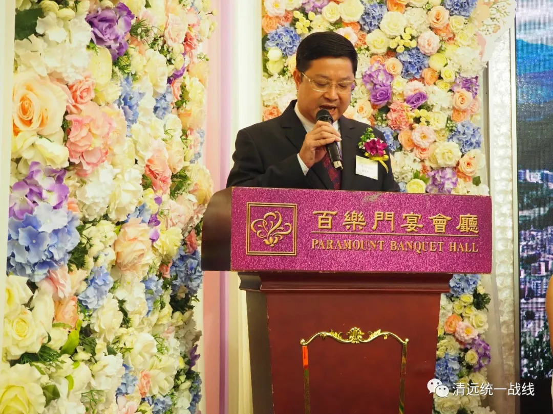 香港清远连山同乡会会长黎国栋代表连山同乡会致辞。他首先对一直以来关心和支持连山同乡会工作的各级领导、各界友好人士和广大乡亲表示感谢和敬意,并对连山同乡会成立一年来的工作进行回顾和总结,表示将带领广大连山乡亲为维护香港地区繁荣稳定,促进清港、连港之间交流合作不懈努力。