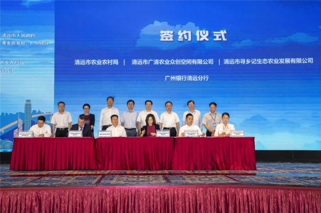 在项目签约仪式上,广州银行清远分行分别与清远市农业农村局、广清农业众创空间、寻乡记公司等签订合作框架协议,提供专项信贷支持,授信额度总计111亿元,以金融服务助力清远农业产业发展。当天还有8个农业产业项目签约落户清远,计划投资总额46.77亿元。