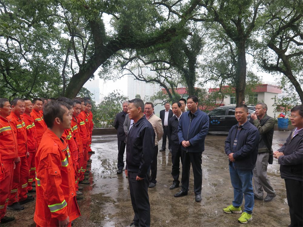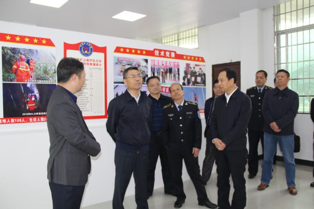 调研组一行到达清远市矿山救援基地。陈华声队长简要汇报了清远市矿山救护队工作开展情况,调研组参观了救护队展览室、装备室、高温浓烟模拟巷道及露天训练场、运动场等场所,仔细检查了相关救援设备、设施。王中丙厅长指出,挽救人民生命和减少财产损失,保一方平安是救护队的职责和存在的意义,救护队一定要做“召之即来、来之能战、战之能胜”的矿山救援队伍,并对基地队伍建设、应急救援工作及标准化建设工作提出了指导性建议和意见。