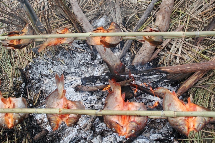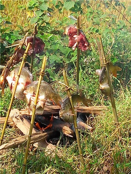 这些在稻田间放养的鱼儿活蹦乱跳,是吃货们最爱的美味佳肴,随即便可以用竹子夹着刚丰收到的稻田鱼进行烧烤,渔乐满满!