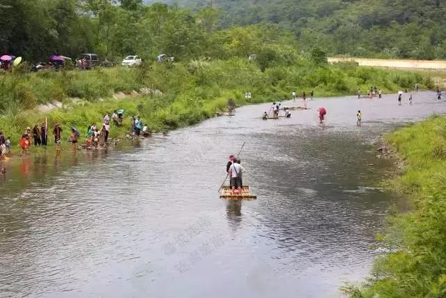 晴空艳阳下,四周青山作依,峰峦叠嶂。在上万群众的助威与呐喊声中,竹排竞速参赛者们奋力争先,集聚在两岸的观众为领先队欢呼,为落后队加油,现场气氛非常热烈!