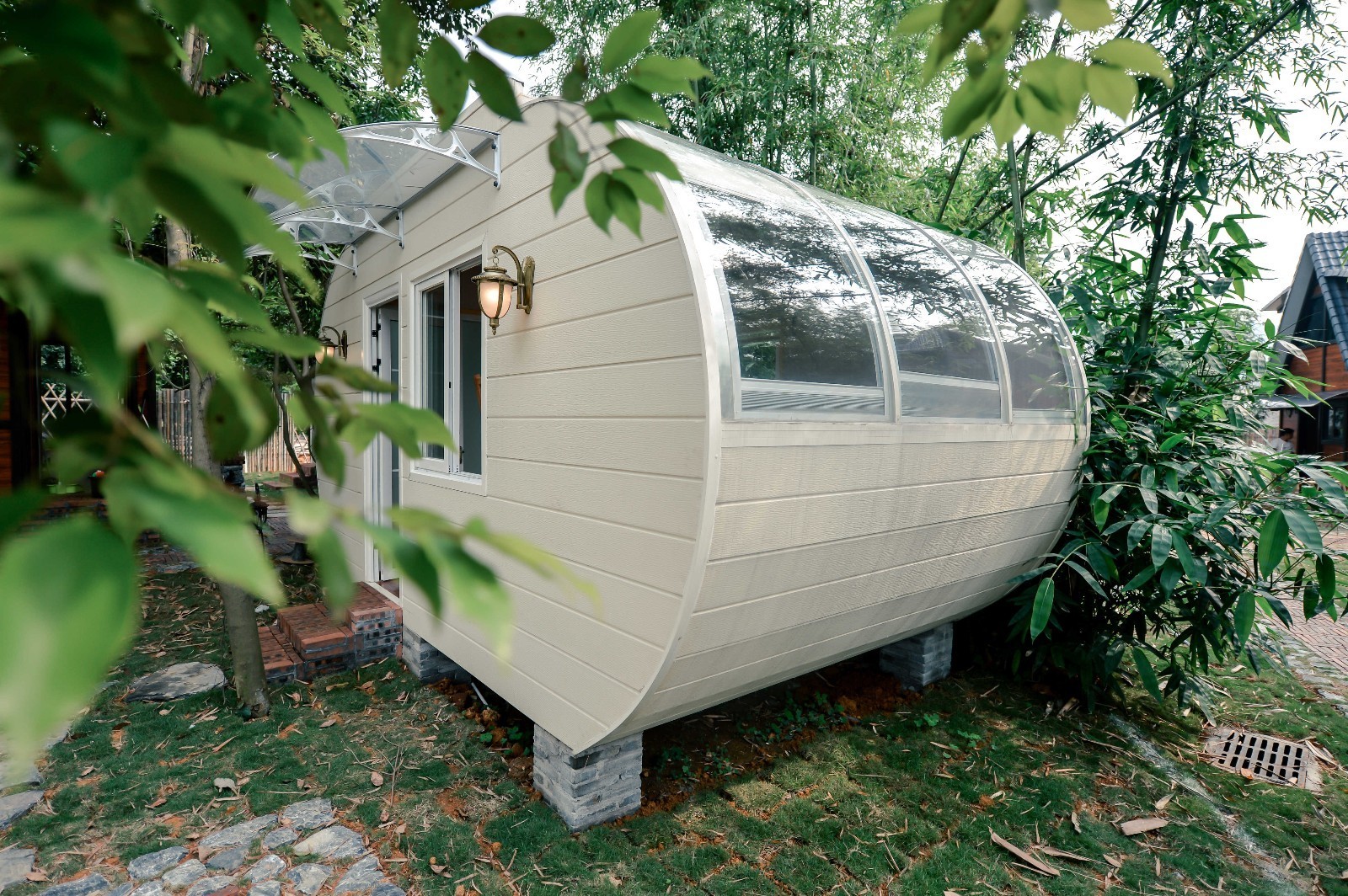 白色永远给人一种纯洁、干净、大方的感觉。全景太空舱,采用的便是纯白色的外墙设计,搭配仿太空舱的外形、全景弯曲的玻璃窗,令人有种耳目一新的感觉。