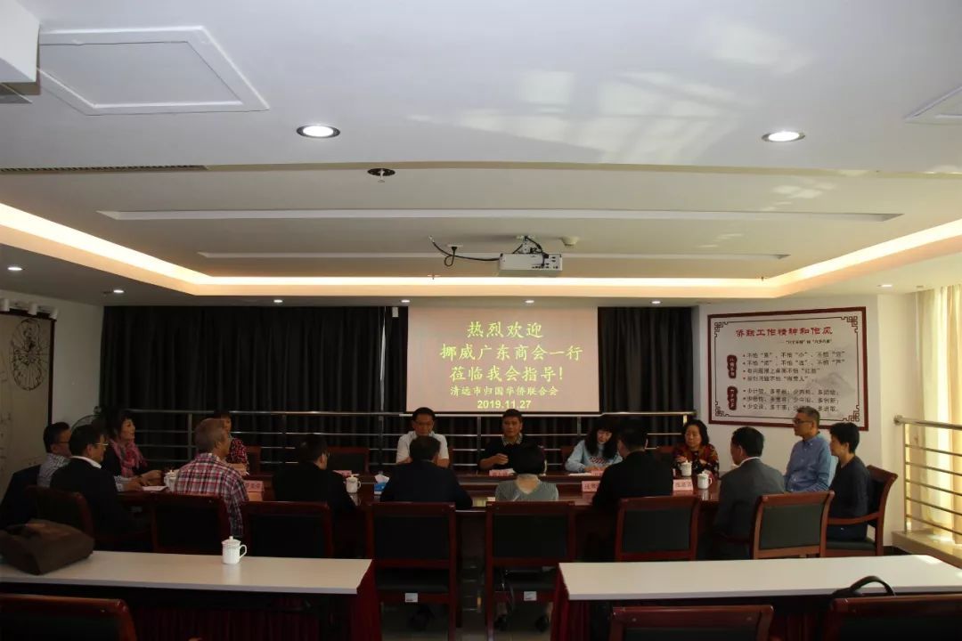 11月27日,由挪威广东商会、全挪威中国和平统一促进会、挪威知青会、挪威上海联谊会、挪威华人艺术协会等社团领导人组成的挪威华侨华人访问团一行到访清远,清远市委常委、统战部部长刘汉球会见访问团一行,并交流座谈。市侨联主席潘汝波、市委外办主任周晓兰,市委统战部副部长吴应文,市侨联副主席黄志雄参加会见和座谈。
