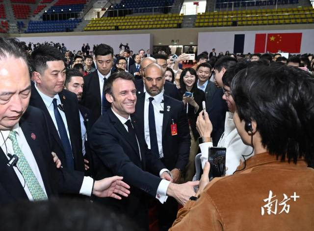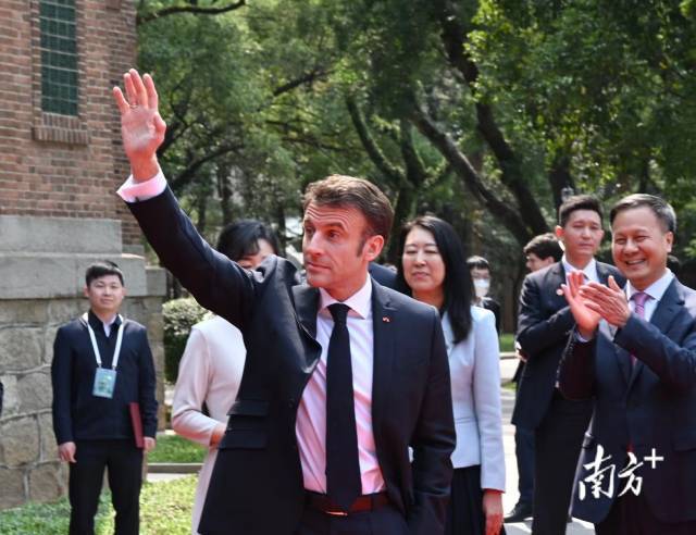 马克龙抵达中山大学,与学生见面交流