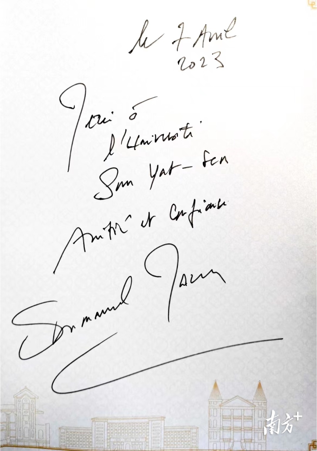 马克龙为中山大学题字: