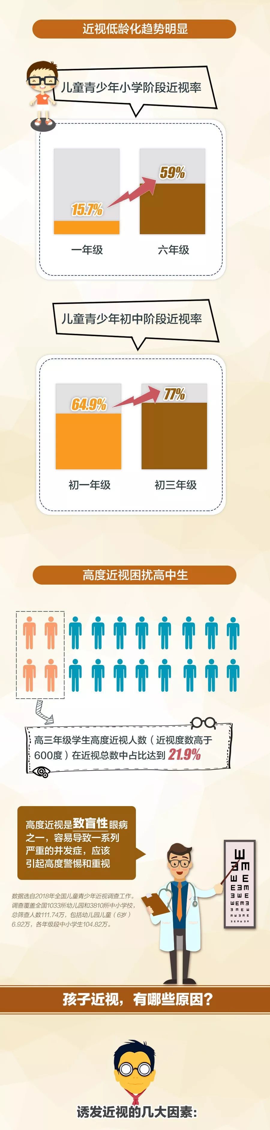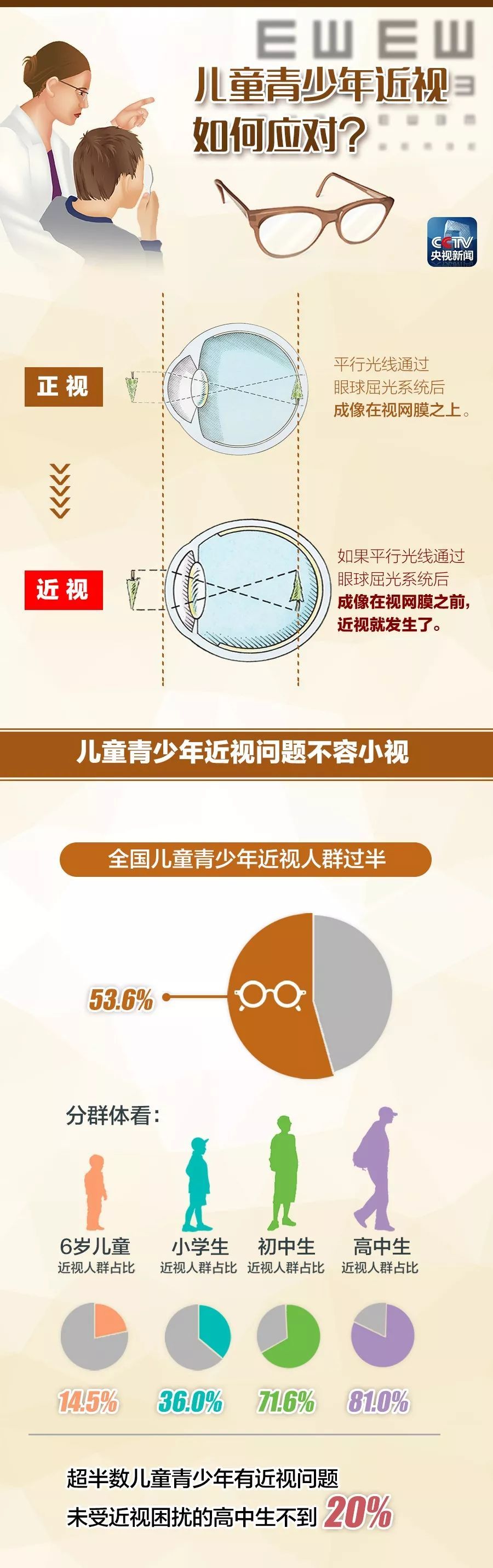 4月29日,国家卫健委召开新闻发布会,介绍了2018年全国儿童青少年近视调查结果。调查显示,2018年全国儿童青少年总体近视率为53.6%,一半以上的儿童青少年受到近视困扰。在高中生群体中,近视率达到惊人的81%。