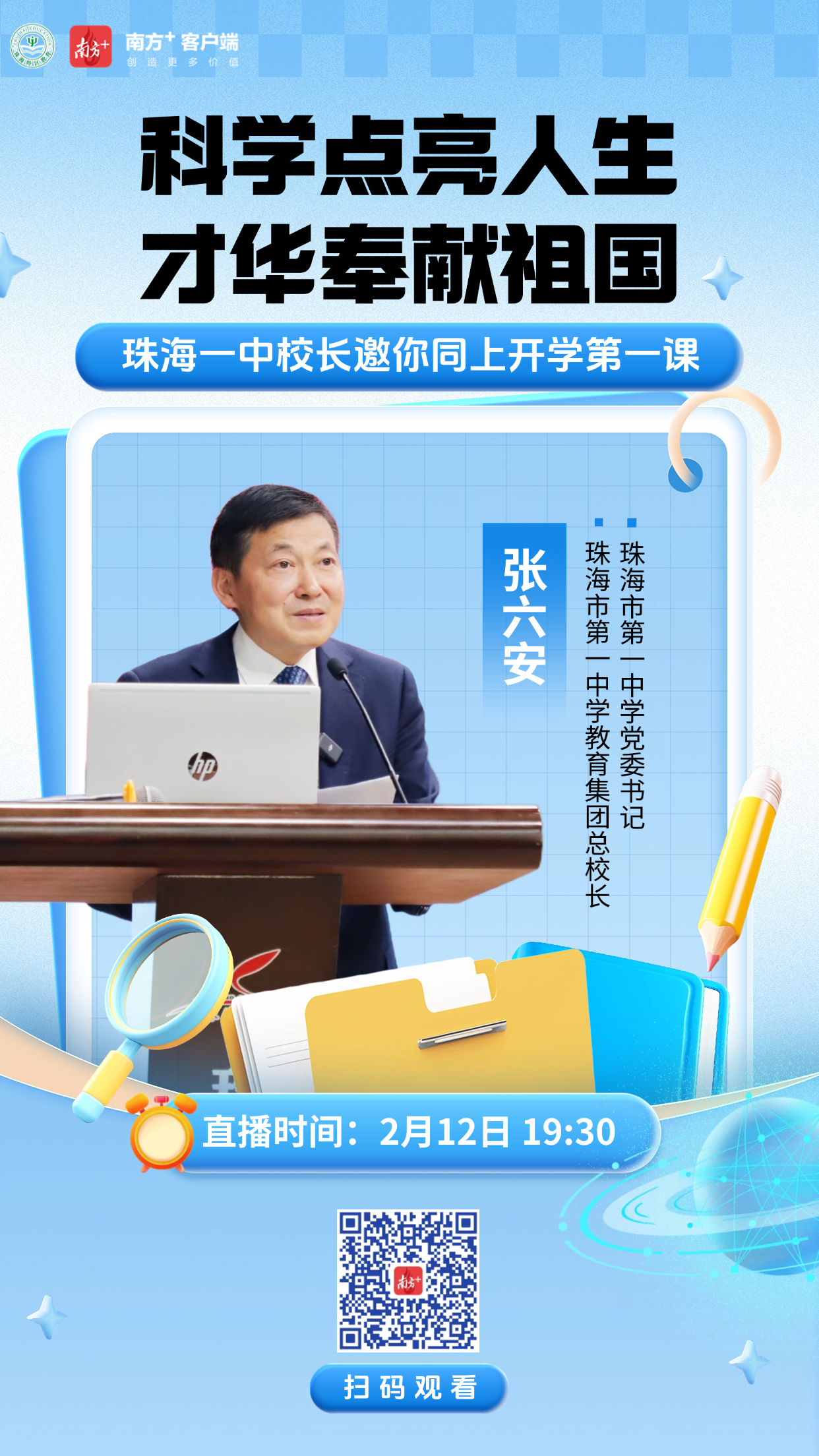 珠海市2025年开学第一课由珠海市教育局、南方报业传媒集团珠海分社共同推出,其主题聚焦“全面提升师生、家长科学素养”。主办方邀请珠海市第一中学教育集团总校长、市第一中学党委书记张六安担任主讲嘉宾,为全市中小学、幼儿园学生、家长分享科学教育的方法与策略。