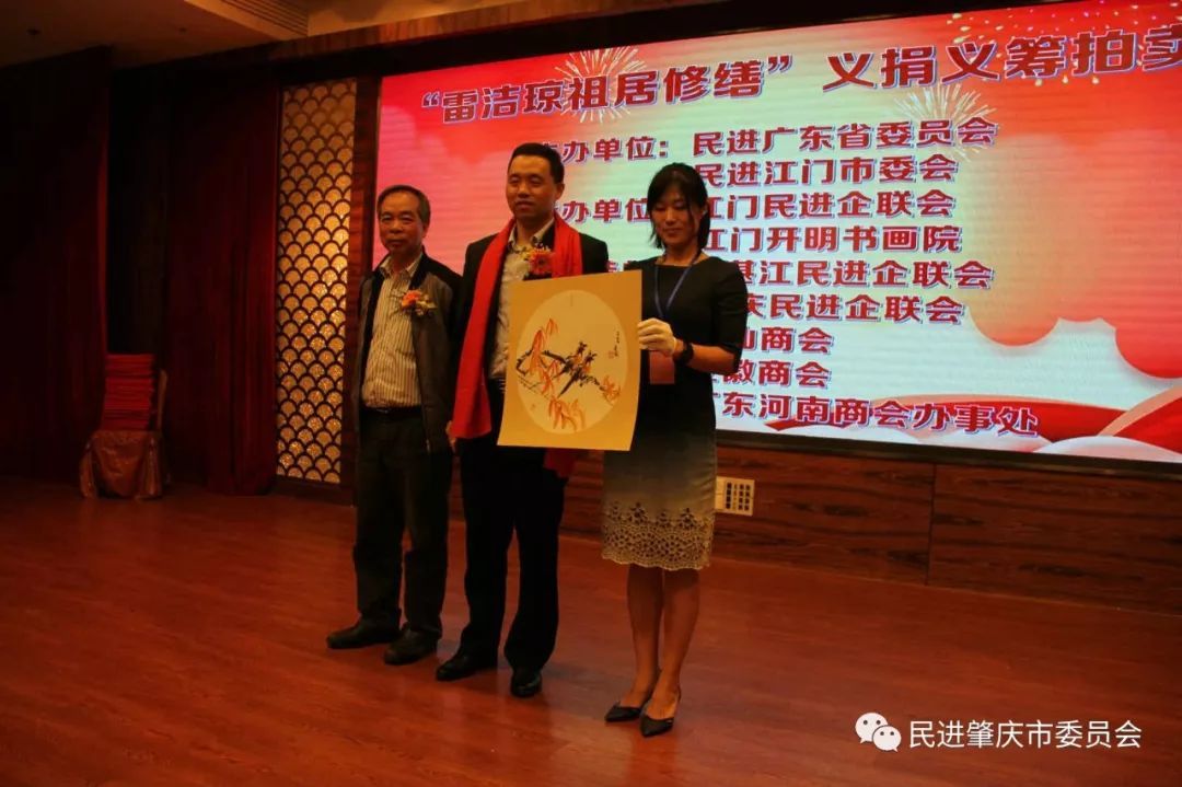 为了更好地传承民进创始人之一雷洁琼先生的优良传统和爱国主义精神,民进广东省委会和民进江门市委会联合举办“雷洁琼祖居修缮”义捐义筹拍卖会。拍卖会得到湛江民进、肇庆民进以及江门市潮资商会、安徽商会、河南商会和民进企业界、书画界会员、会外书画家的大力支持,共募得书画作品80多幅。民进广东省委专职副主委胡献、民进江门市委会主委费伟东等领导出席了拍卖会。肇庆民进企联会执行副会长韩伟华和副秘书长李建玲应邀参加拍卖活动。