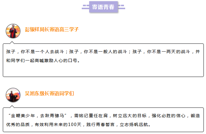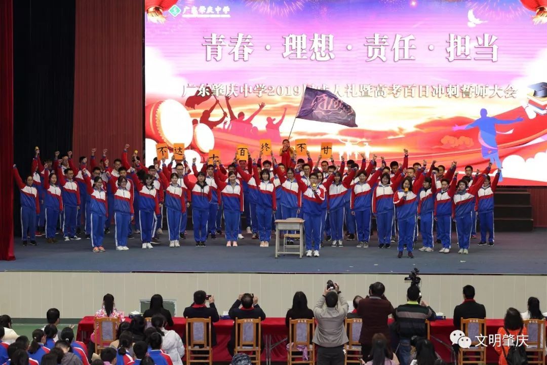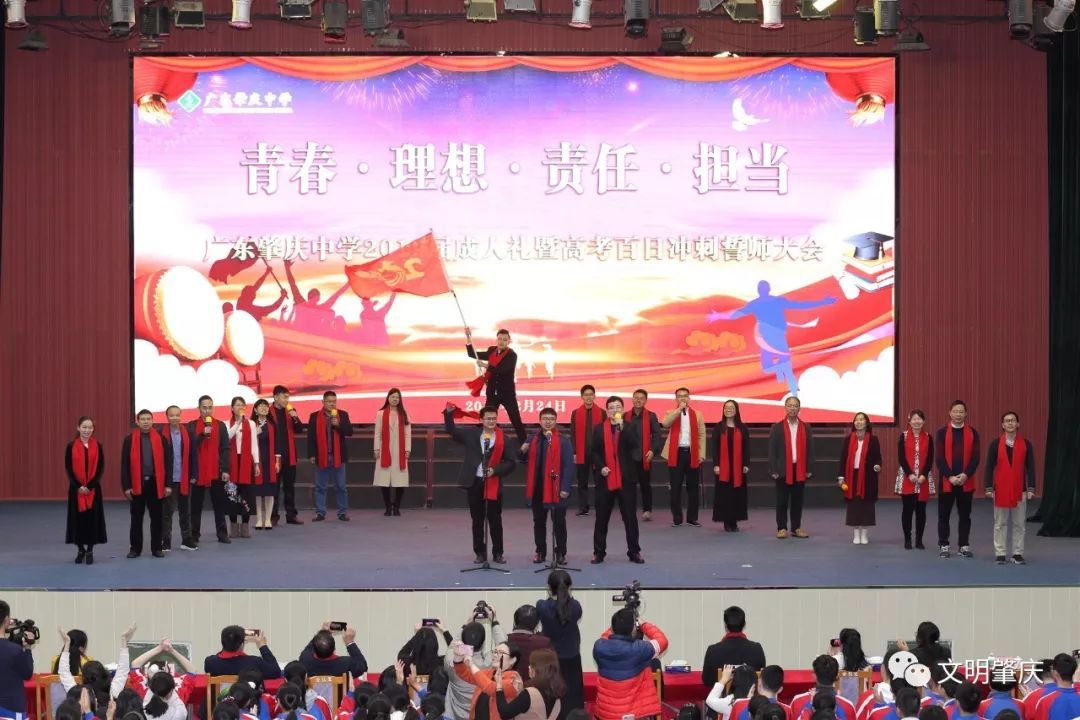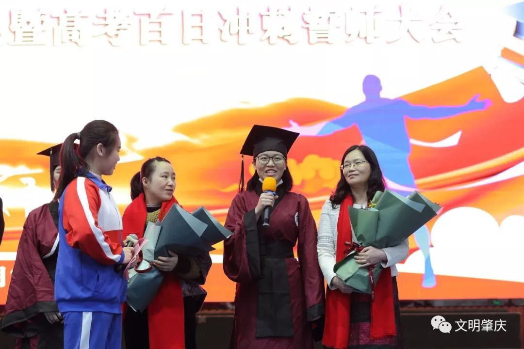 最后的环节是各科老师代表上台向大家展示祝福,激励同学们拿出状态,冲刺最后一百天。祝福大美肇中,祝福2019届高三学子圆梦高考。