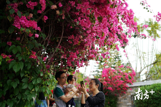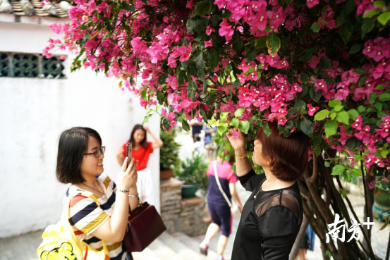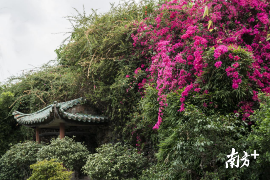 在春天到来之后,园中的三角梅成了让这座古建筑最亮眼的点缀。清明小长假期间,南方+记者来到了可园,发现前来游玩的市民和游客很多,而三角梅盛放之处则成为了人们的“打卡圣地”。