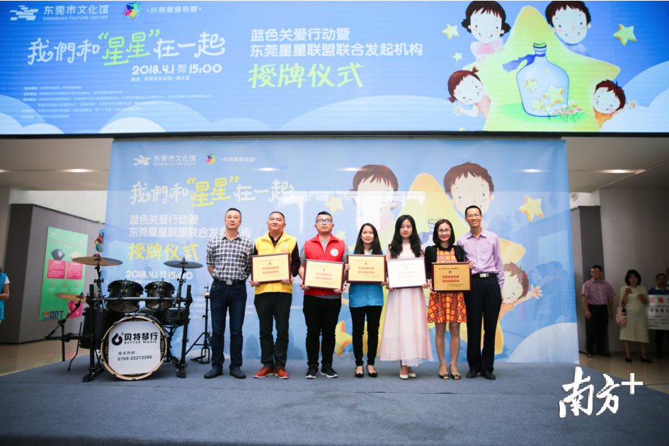 在上周第11个世界自闭症关爱日,“我们和‘星星’在一起——蓝色关爱行动暨东莞星星联盟联合发起机构授牌仪式”在东莞市文化馆举行。市文化馆联合东莞星星联盟、社会各界爱心人士,以“走出家庭、参与社会”为目标,以“蓝色关爱行动·做星空点灯人”为口号开展系列活动,带动更多公众认识了解自闭症,包容、接纳自闭症儿童,一起关注星星儿。