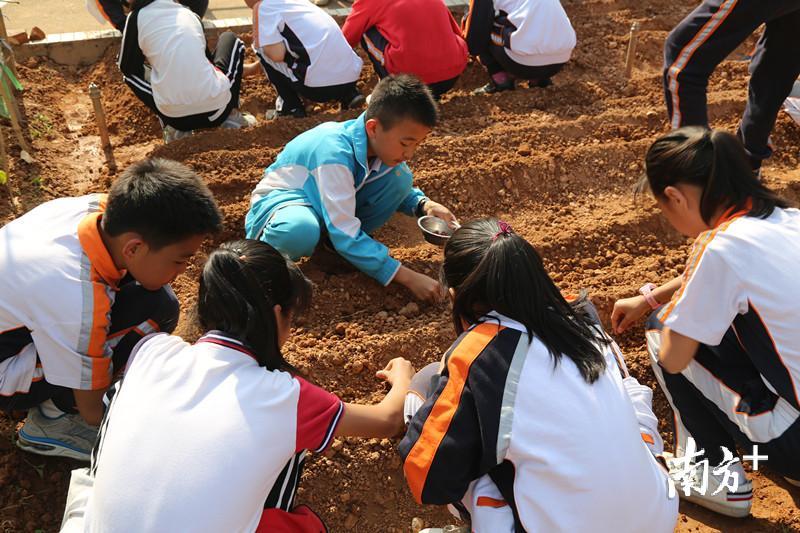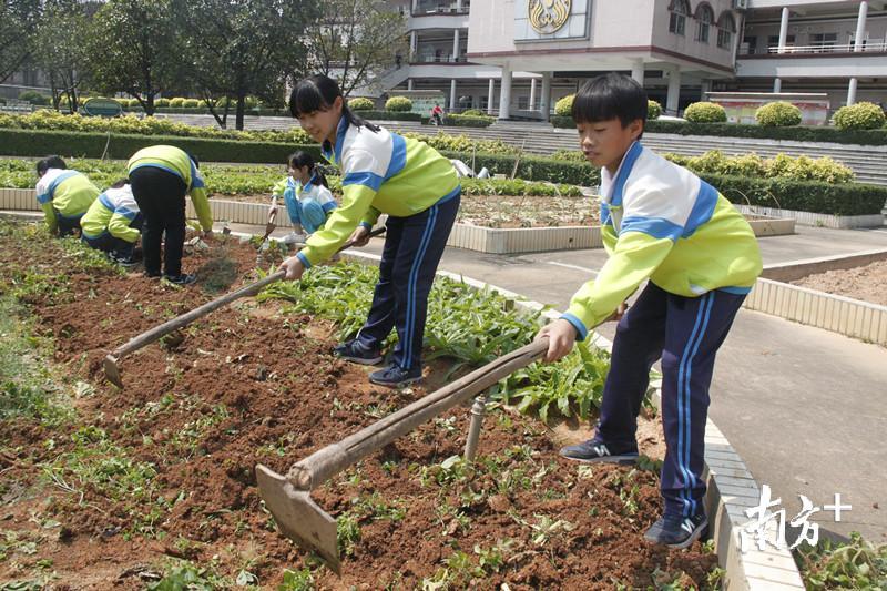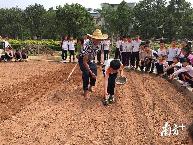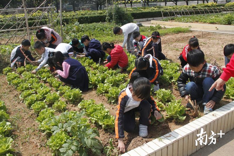 拔苗、播种、插秧……这些平时在田间见到的耕作情景,被“搬”到了小学的校园里,而种水稻的“主角”是满脸稚气的小学生。学生们告诉记者,他们非常喜欢在菜地里上课,既能体验田间劳动的辛苦,又能收获自己的劳动成果。