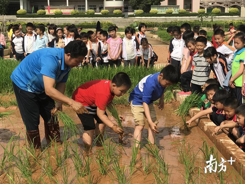 “清明前后,种瓜点豆”,近日,东莞大朗鸣凤小学顺应四季农时,在校内的“开心农场”播下了黄豆的种子,并组织全校师生在水稻田里开展拔苗插秧的劳作体验。这个深受师生们欢迎的“农耕课”,就是该校正大力开展的“食农教育”,目前全校500多名师生每周都要到地里劳作,当一回真正的“农夫”。