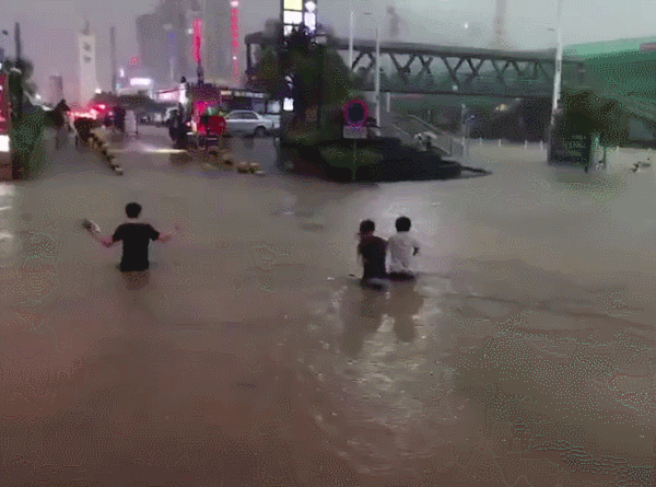 再次感受一下14日的罕见大暴雨:街道成河,广场成海——