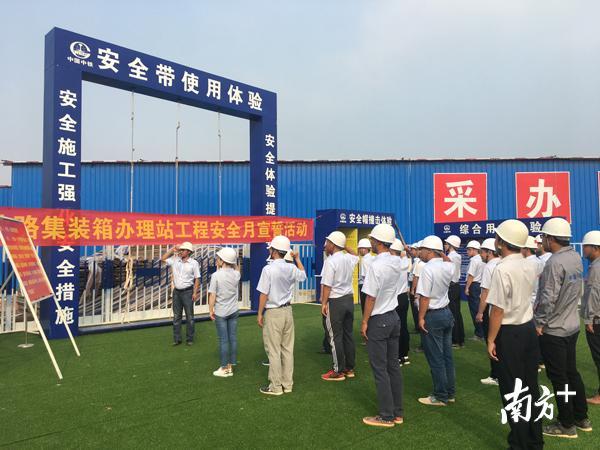据工程项目部有关负责人介绍,广东铁路国际物流中心工程项目以安全生产月主题“生命至上、安全发展”为指导方针,以增强全员应急意识、提升全员安全素质,有效防范和遏制生产安全事故为目标,以强化安全红线意识,推进安全生产管理,落实公司安全生产制度为要求,狠抓安全质量管理。