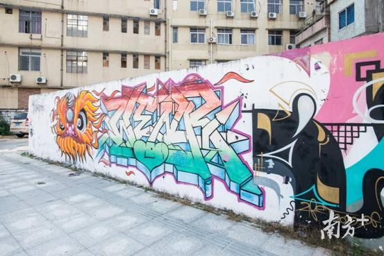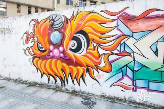 这里的涂鸦还融入了一些广东的元素,比如醒狮的狮头,活灵活现。