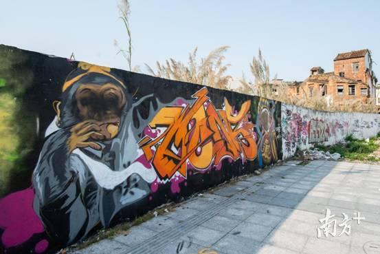 在进入中国之后,涂鸦的形式也在发生改变,有人会加入一些中国风的元素,毕竟“中国风就是SKR SRK”嘛。可以看到,在莞城这片荒地上的涂鸦,除了英文字母外,还有中国风的元素,比如这幅猴王的涂鸦。可惜的是记者看到的时候已经有损毁了。