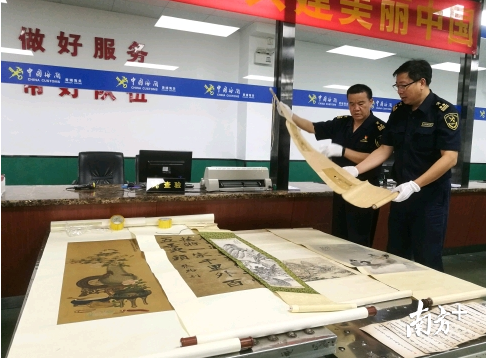 8月7日,经广东省文物鉴定站实物鉴定,上述物品中共有禁止出境一般文物3件,分别为清代山水画轴1件、清代书画册1件、清代五言诗轴1件;限制出境一般文物3件,分别为民国山水画轴1件,民国仿画图2件。