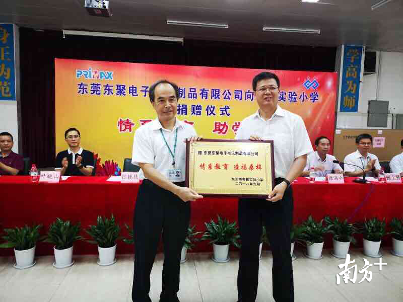 仪式上,张振德向石碣实验小学捐赠了价值20万元的设备。叶晓山向东聚电子回赠了捐赠证书,罗晓勤向东聚电子颁发纪念牌。