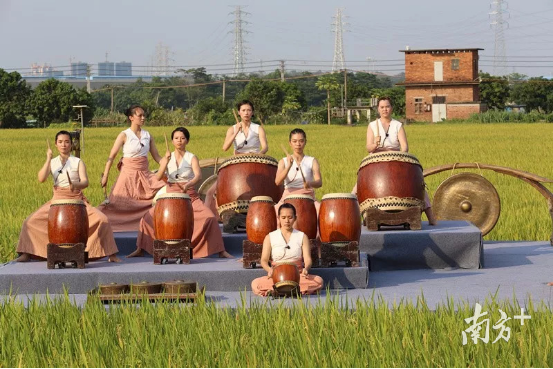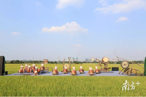 在即将丰收的稻田之上翩然起舞,在荔熟蝉鸣的夜晚敲响神鼓……台湾“优人神鼓”剧团在东城周屋创意稻田的演出沁人心脾,田园风光与艺术的邂逅也令人感受到东莞乡村的魅力。