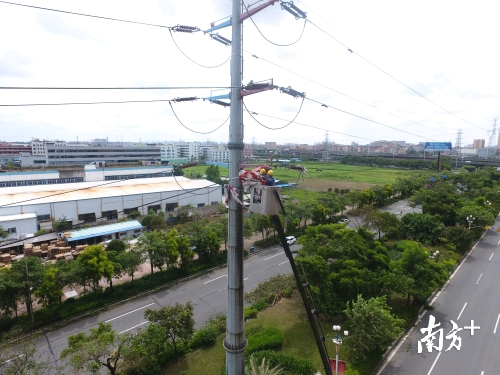 17日,受台风“山竹”的影响,广告漂浮物“袭击”东莞110千伏陈龙线,并悬挂在线路上,导致线路故障性跳闸。