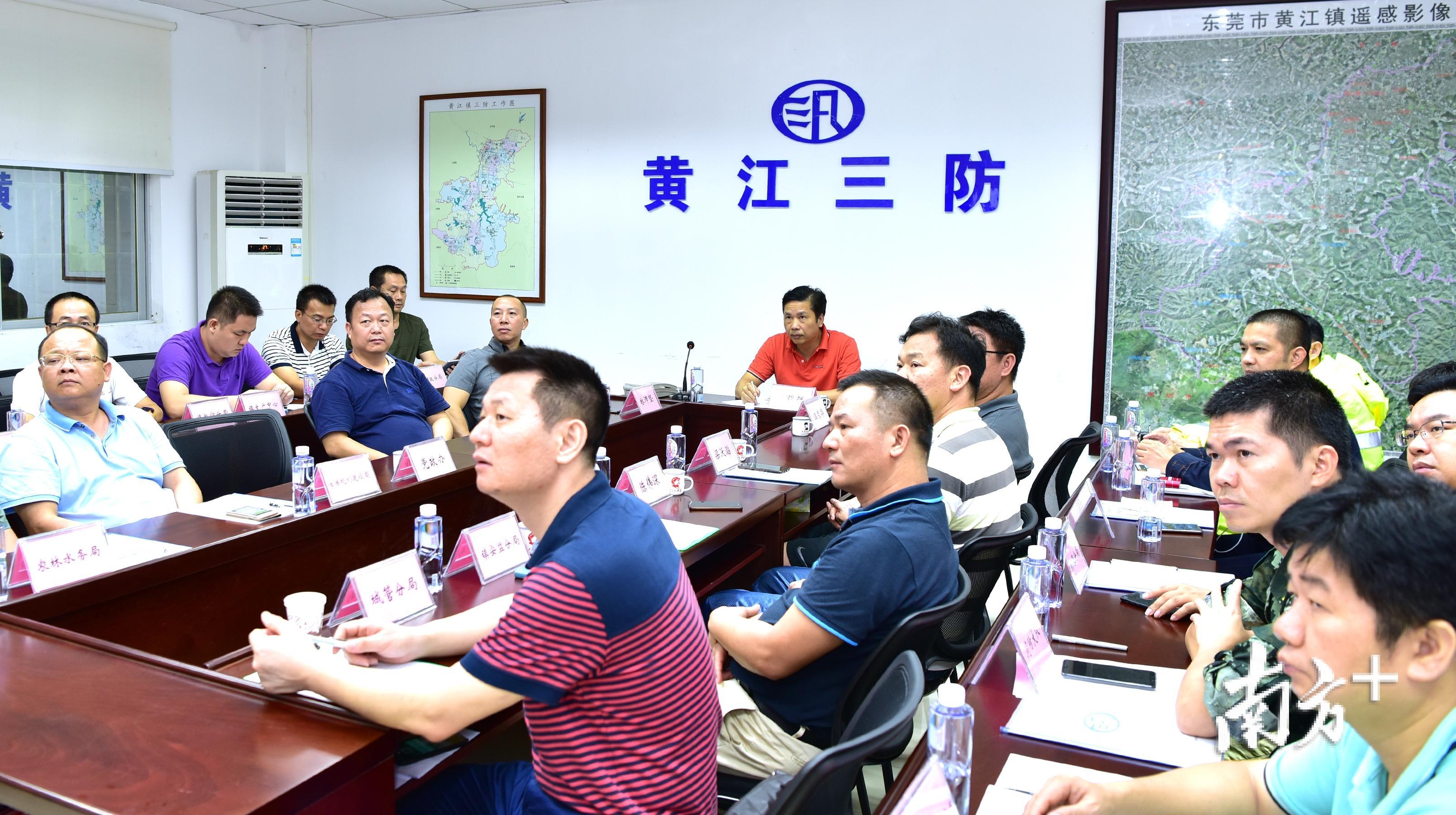 风雨迅速加大,狂风卷积着暴雨狠狠地砸向地面,耳边只听到呼呼的风声。当记者抵达位于黄牛埔水库边上的黄江三防办的时候,全市防御台风“山竹”的电视电话会议正在召开。气象、城管、水务、交通、教育等多个部门的负责人轮流报告防御工作的最新进展。