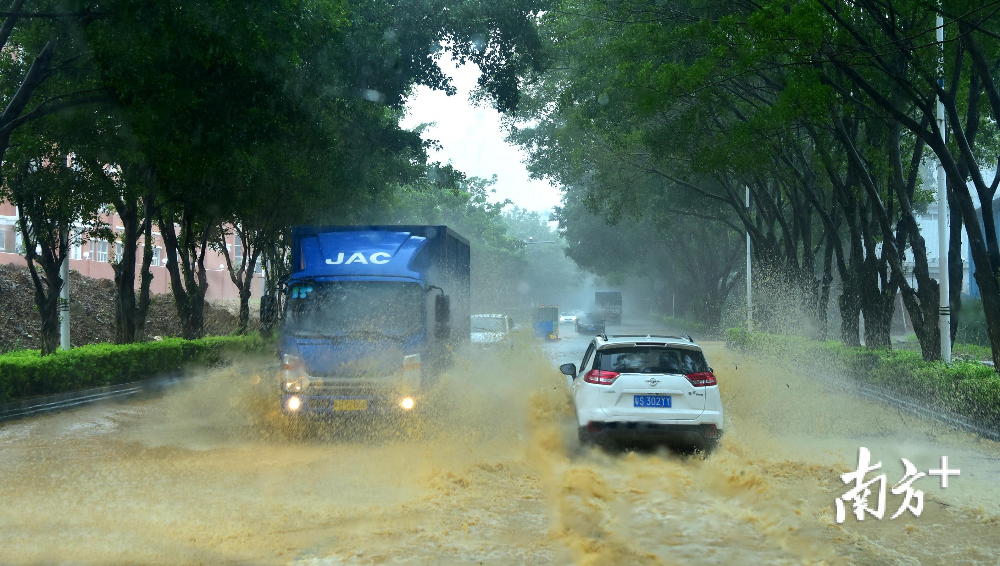 更令人担忧的是,台风“山竹”还带来了大量降雨,黄江全镇河流水位暴涨,公常路、东环路等道路的低洼路段因被淹没,板湖村聚富路的积水更是超过50厘米,车辆完全不能通行。