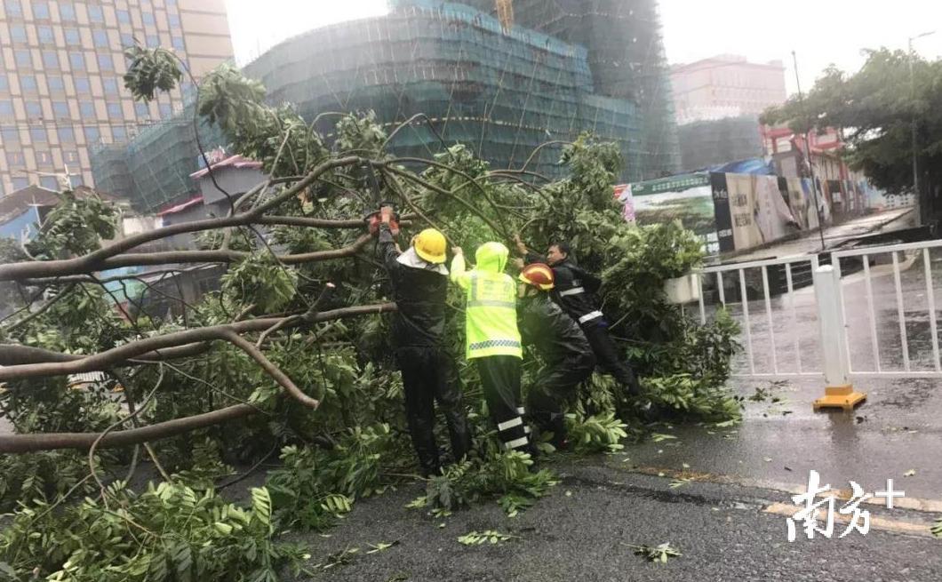 经黄江城管分局统计,截止9月17日10时,全镇共有245棵树木倒伏,逾600棵树木的断枝存在安全隐患。在抵御台风的过程中,黄江城管分局会同管养公司先后出动近400人、12辆车,连夜清理路面垃圾,处理危险广告牌以及路灯设施设备数十处。在公安、网格中心等部门的协助下,截止目前,黄江城管部门共计清理各类垃圾杂物320吨。