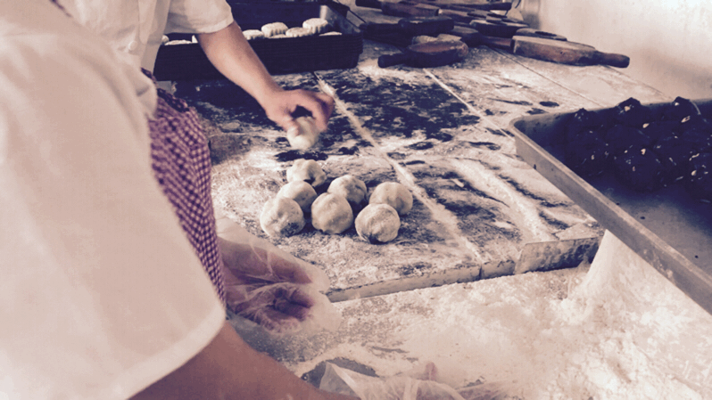 馅料制作好了之后,还需如“包饺子”般将馅料包起来。从和面、揉面到包馅料的整个过程,都是全手工制作而成。