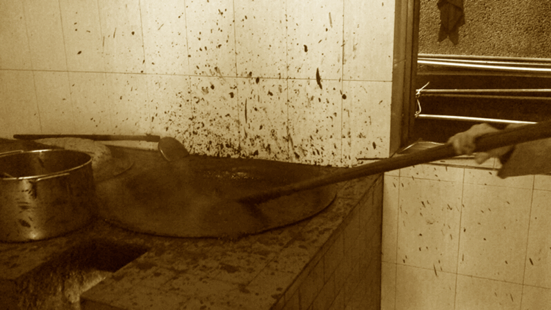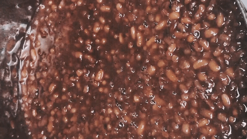 制好的豆沙还需要慢火熬制4小时,并不停的搅动。