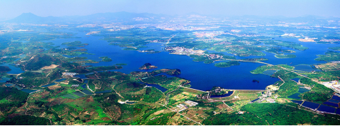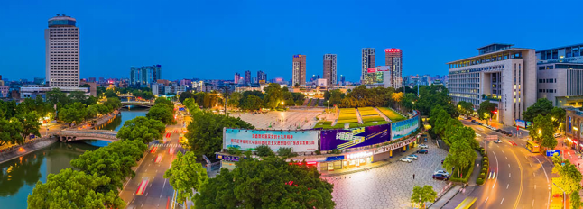 2018年,莞城新貌。运河边上的华侨大厦(即“旧华大”)已不复存在,后来兴建的华侨大酒店(即“新华大”)已被改造为莞城公安分局巡特警办公场所,原来的东方酒店已改造成为莞城公安分局办公大楼。 巫业通摄