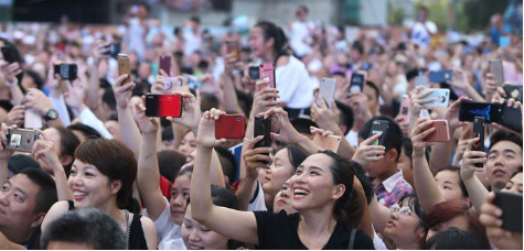 2018年8月7日,东莞厚街一场活动上,人们手持手机记录精彩时刻。郑志波摄