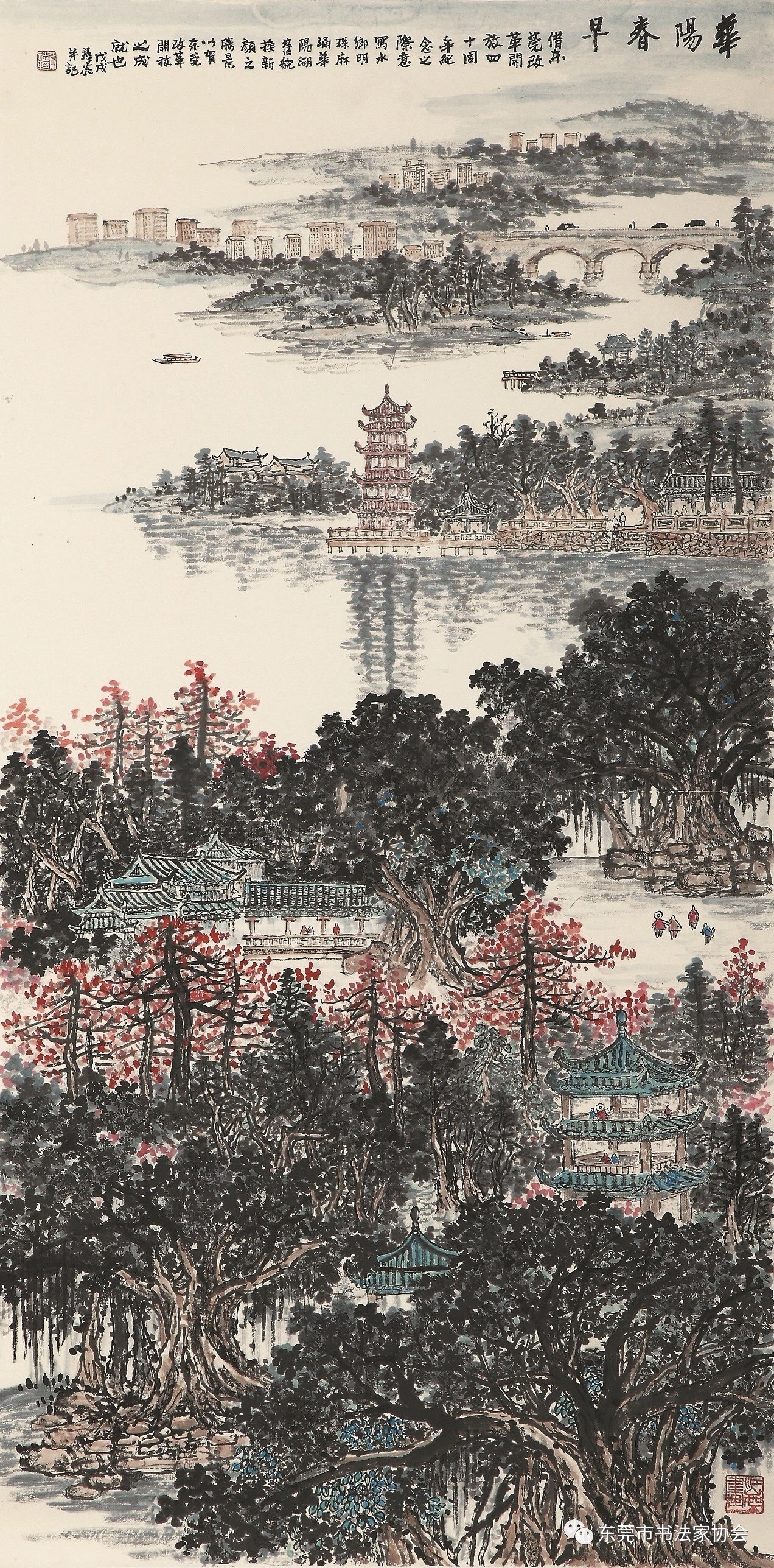 几十年一晃过去了,特别是经过四十年改革开放,东莞的水乡一切都变了。不但经济迅速发展,人民生活显著提高,而且村镇面貌,交通条件,自然环境都发生了翻天覆地的变化,特别是麻涌华阳更是成为东莞农村变化的缩影,令人流连忘返的华阳湖美景更使我激发创作的冲动。于是,在纪念东莞改革开放四十周年之际,我画了这幅《华阳春早》,既是一种情怀,也是一种赞美,更是一种纪念。
