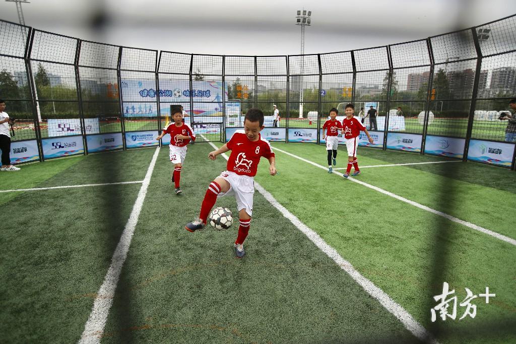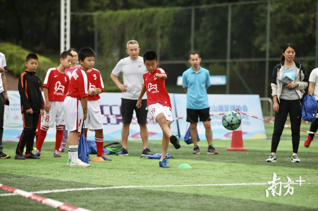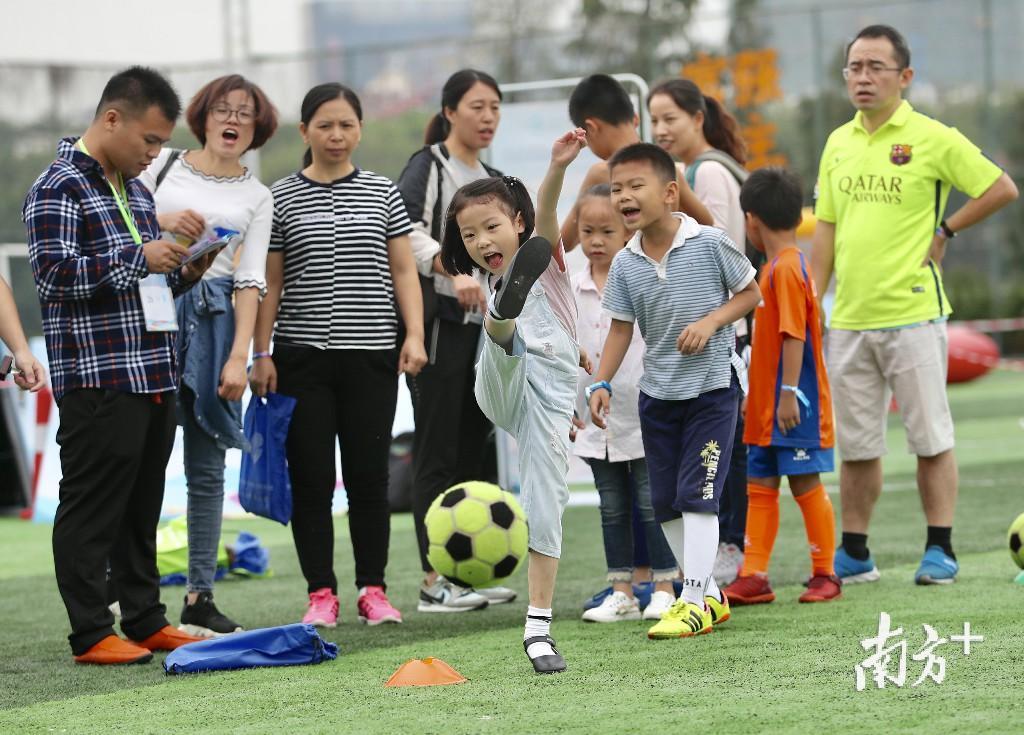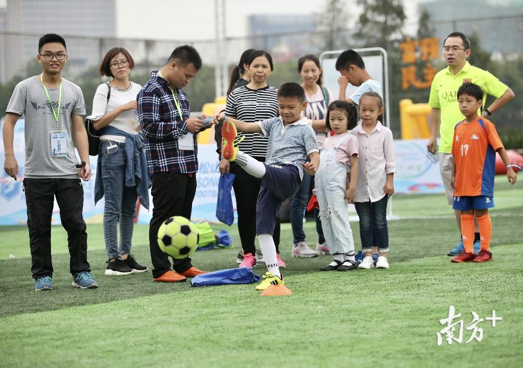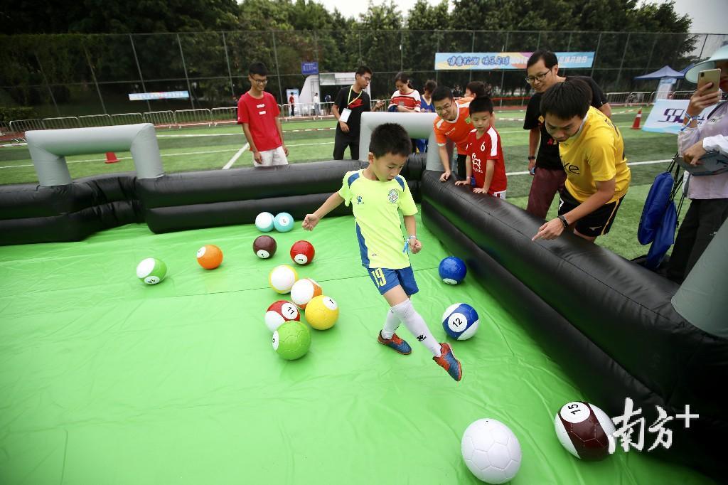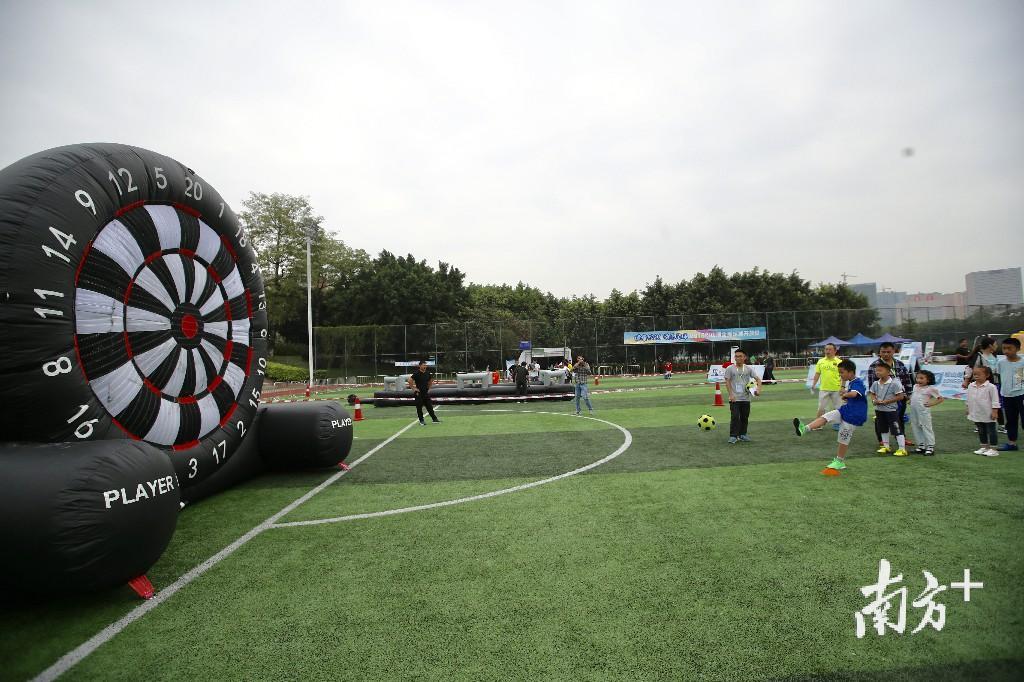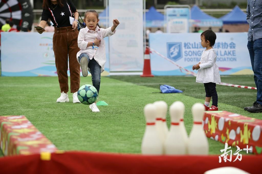 13日上午,家住月荷居的张先生带着家人来到足球开放日现场,7岁的儿子和4岁的女儿上场挑战,体验飞镖足球和足球保龄球,玩得不亦乐乎。张先生经常跟朋友踢球,“孩子既踢了足球,又玩了游戏,比在家看动画片、玩手机好多了。”张先生直言,希望松山湖多举办足球开放日这样的活动。