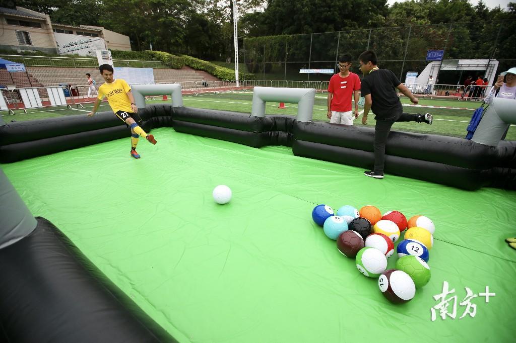 足球开放日活动现场设置了笼式足球、泡泡足球、飞镖足球、足球保龄球等趣味项目。活动主办方的卫计部门在现场提供医疗保障,还结合自身专业优势为群众提供健康服务。