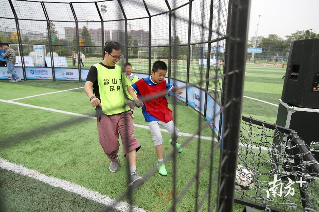 10月13日,“健康松湖 快乐足球”2018松山湖全民足球开放日活动的现场热闹非凡。在松山湖足球公园内,大人和孩子都在绿茵场上追逐竞技,现场满是趣味足球带来的欢笑声。