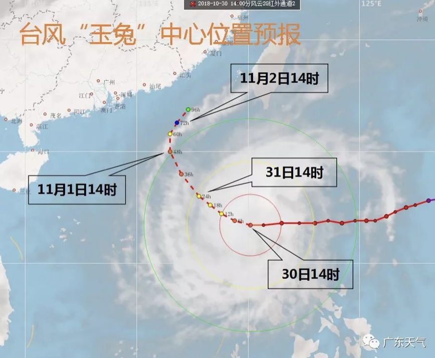 10月31日16时28分,东莞市气象台发布台风白色预警信号。