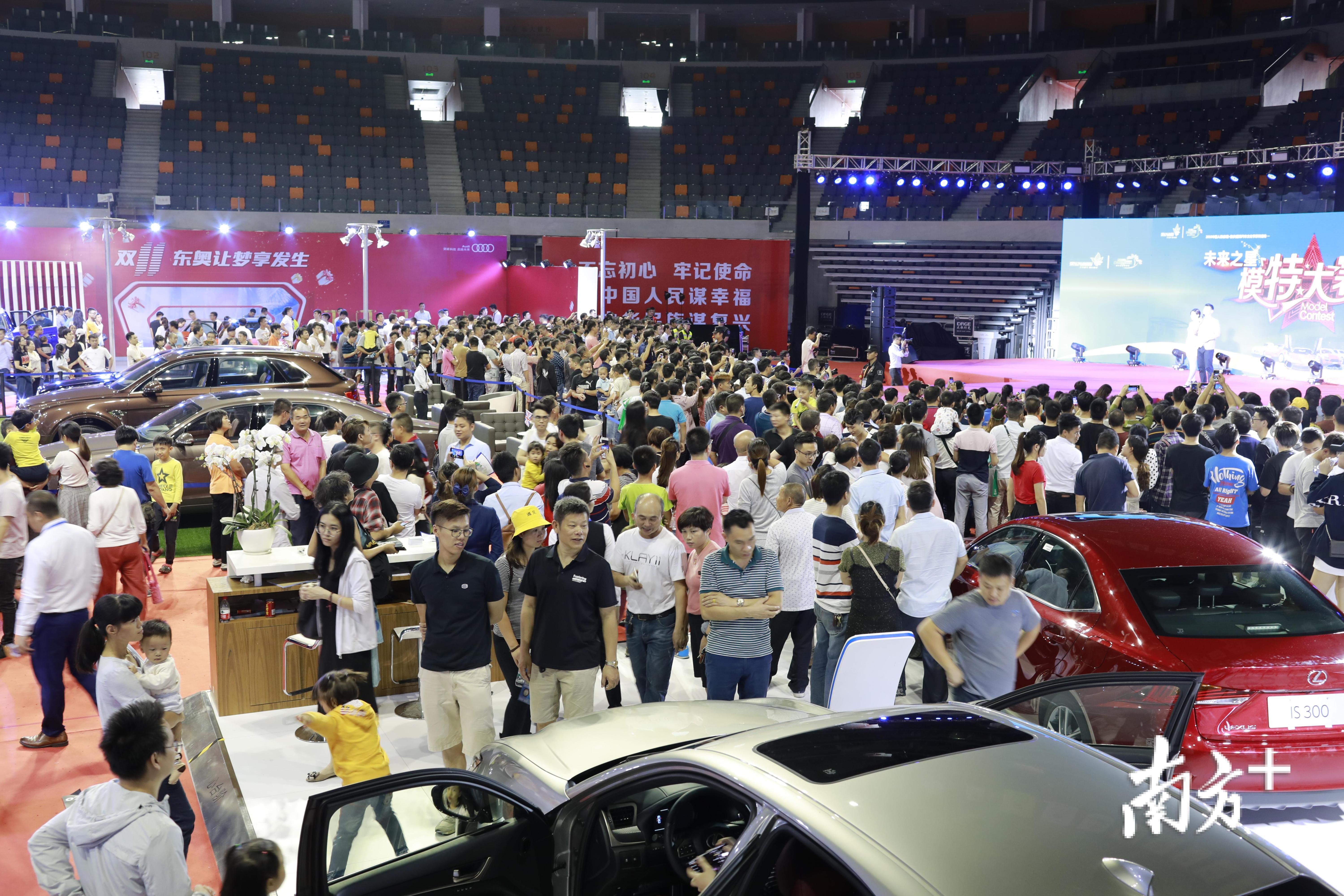 本届汽车文化节的现场到底有多火爆?从惠州特意赶来看车的杨先生赞叹道,在偌大的东莞篮球中心,到处都是人头和笑声,而在场外由于停车场被挤爆,有些车辆需要停在一公里外才能步行入场。