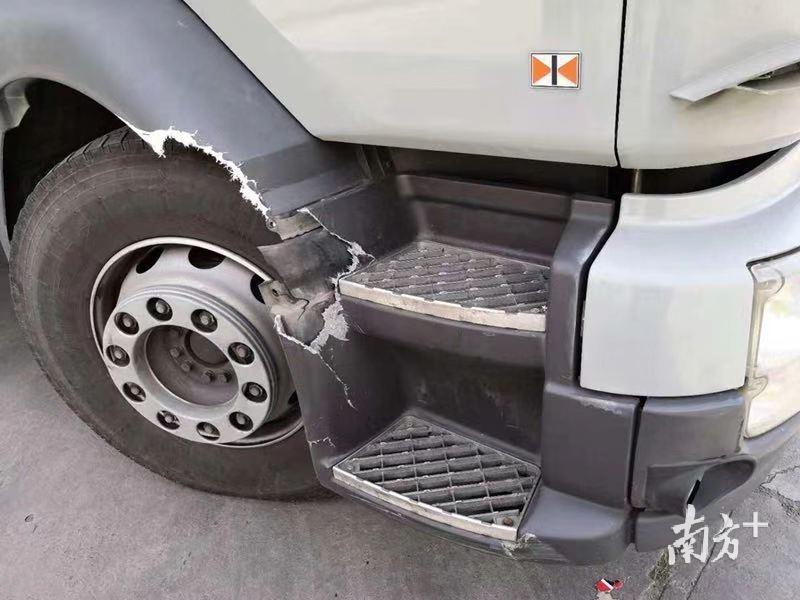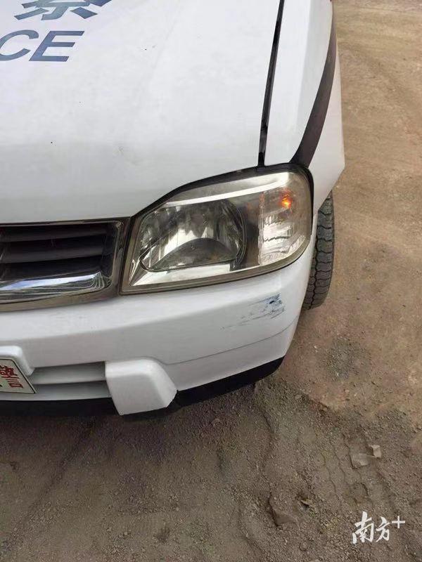 10时许,这辆大货车逃至塘厦太阳城路段时又撞到一辆号牌为粤ZCSXX港的大货车,并在倒车时与清溪大队一辆警车发生碰撞。