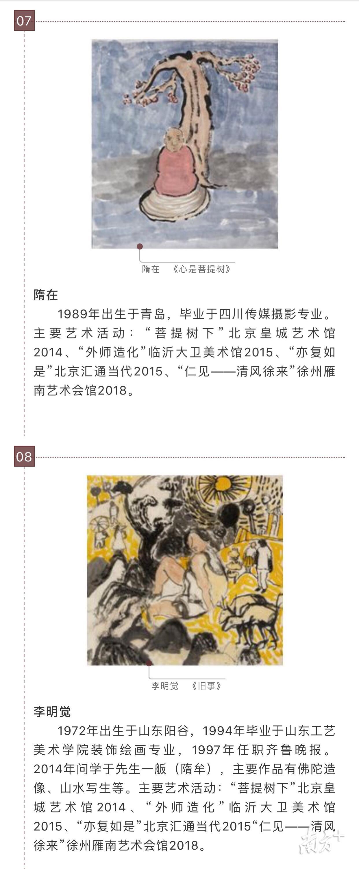 据悉,予觉学社由隋牟于2013年创办,以中国传统文化情怀入画,擅长从佛学禅理中推法画道。写出清新高古的境界。