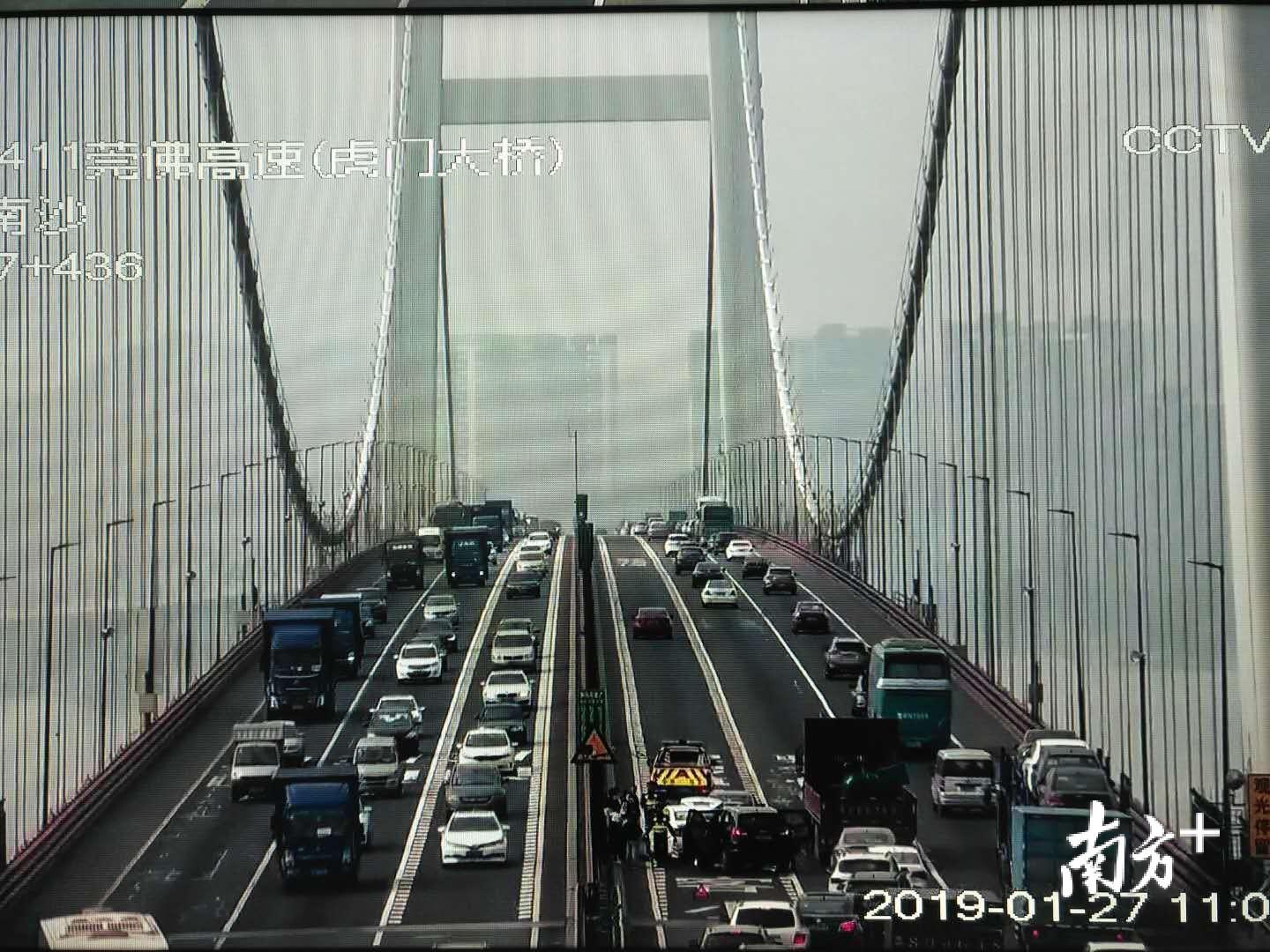 春运开始后,虎门大桥车流量居高不下,今早7时,往中山珠海方向就出现7公里缓行。