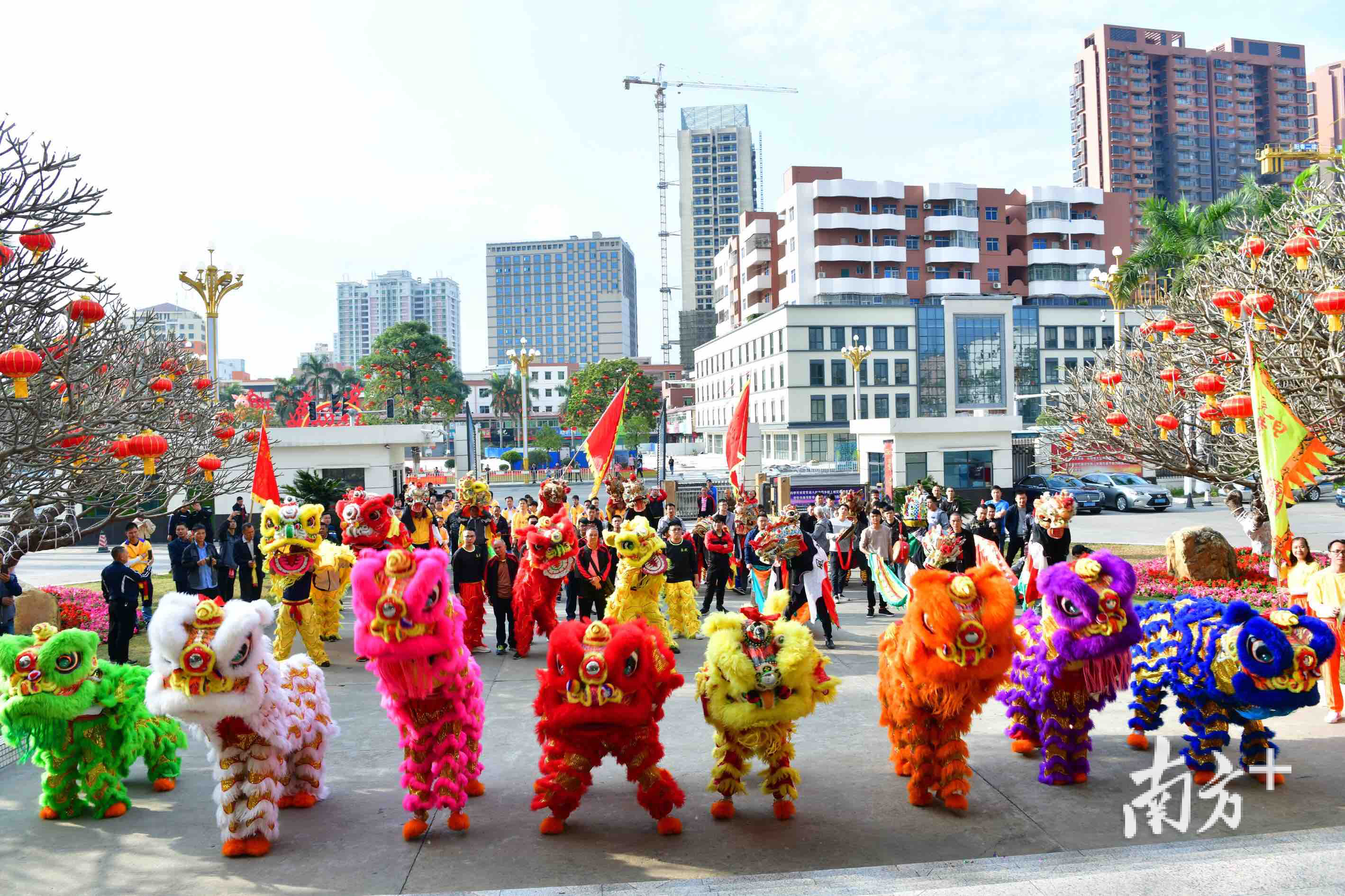 彩旗飞扬,麒麟狮子贺新春