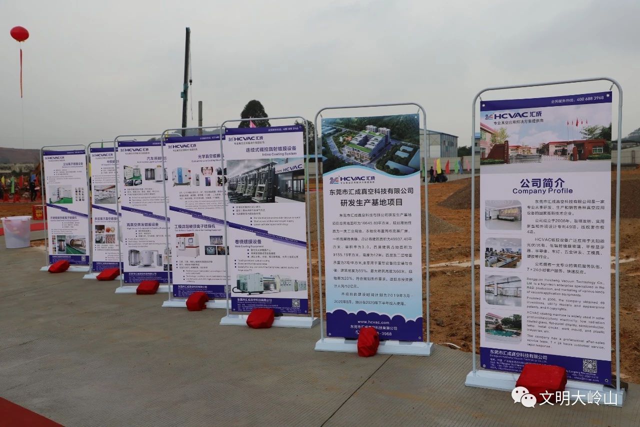 2月19日,东莞市推进粤港澳大湾区建设首批重点项目集中动工大会暨轨道交通1号线项目全线动工仪式在市展览馆门前广场举行,大岭山在鸡翅岭村同步举行汇成真空科技有限公司研发生产基地项目动工仪式。东莞市委常委、松山湖党工委书记黄少文,大岭山镇委书记陈福坤等部分班子成员,汇成真空科技有限公司董事长罗志明为研发生产基地项目挥铲奠基,各村(社区)、线办负责人,汇成公司部分股东等参加动工仪式。