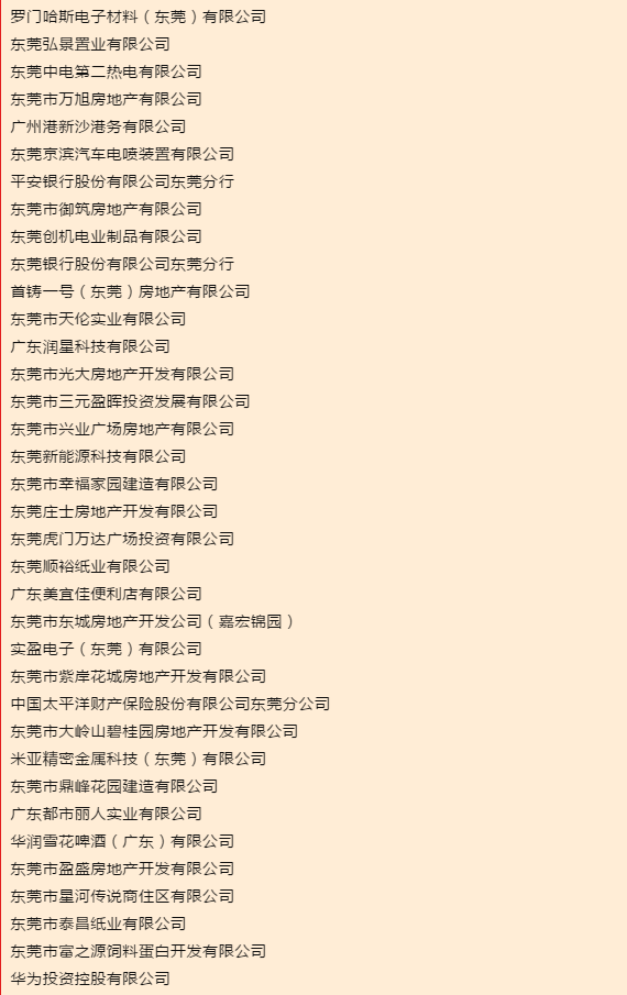 四、2018年度东莞市效益贡献企业名单