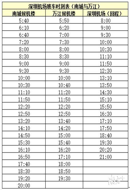 南城/万江候机楼→深圳机场巴士最新时刻表 (4月19日开始执行)